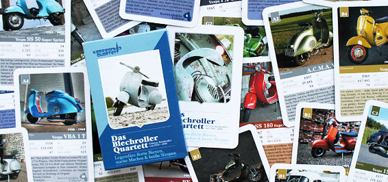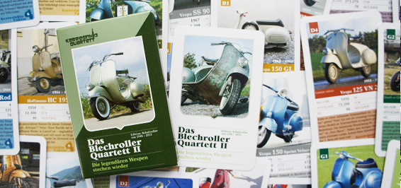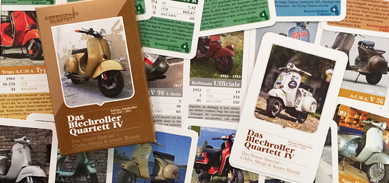 Natürlich müssen die Fußballfans und die Rollerfahrer nicht auf 'ihre Spiele' verzichten, so dass ein Blechroller Quartett Teil 3 folgt. Zu Ehren unserer gewonnenen Weltmeisterschaft im Jahr 2014 gibt es das Quartett "Deutsche WM-Legenden von 1934 - 2014", das schnellst ausverkauftes Spiel der Kerresinhio Geschichte. 2015 erscheint das lang ersehnte internationale Trainer-Legenden Quartett, 2017 folgt das Europapokal-Legenden Quartett. Kurz vor dem CORONA-Kerresinhio-Winterschlaf, der zwei Jahre dauerte erschien der schnell vergriffene Klassiker der legendären Fußball-Skandale.